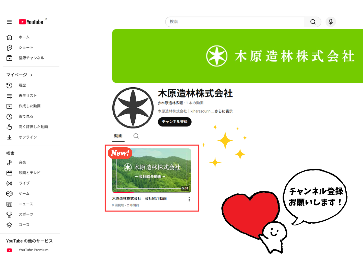 この度、Youtubeに木原造林株式会社のチャンネルを開設いたしました。